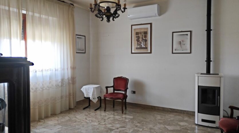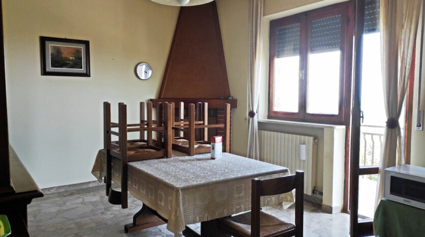 In soluzione trifamiliare si vende appartamento di circa mq. 120, sviluppato su un unico livello, posto al piano primo. Ingresso, cucina con camino, tinello, balcone panoramico di mq. 28, soggiorno, tre camere da letto, ripostiglio (con possibilità di realizzare il secondo bagno), bagno e terrazza di mq. 36. Completa la proprietà garage di mq. 18.