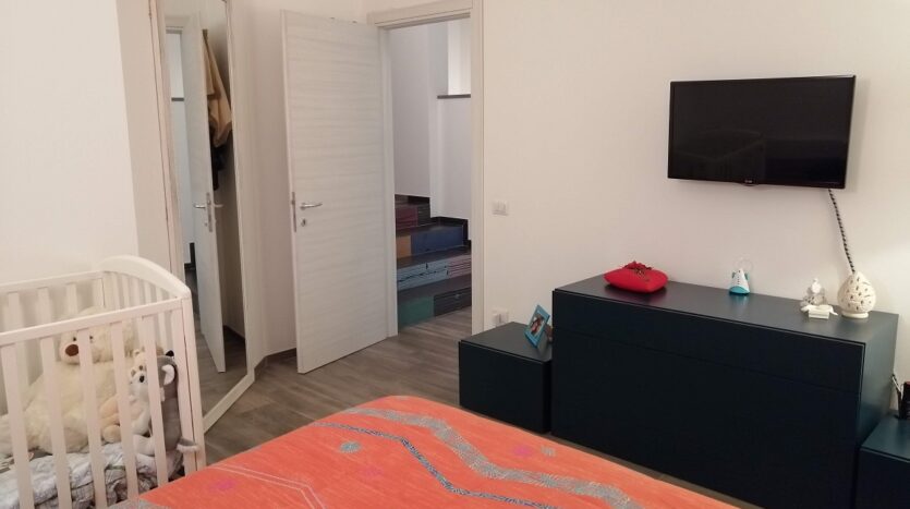 Piano Primo (circa mq. 50): Camera matrimoniale con cabina armadio e balcone, seconda camera matrimoniale con balcone, cameretta/studio e bagno con doccia.